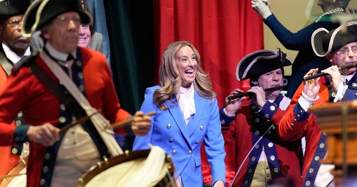 Sherrill went right at Trump without ever naming him, as the scourge of Liberty. She cited the Declaration’s bill of indictment, implicitly charging Trump with blocking popular legislation, obstructing justice, meddling with the judicial branch and maintaining standing armies in time of peace. “This election,” she said, “proved that the people of New Jersey recognize the parallels” between George III and Trump. Invoking life, liberty and the pursuit of happiness, she said that “every human being is endowed with these rights by their creator. Not by a king.” People stood and cheered.